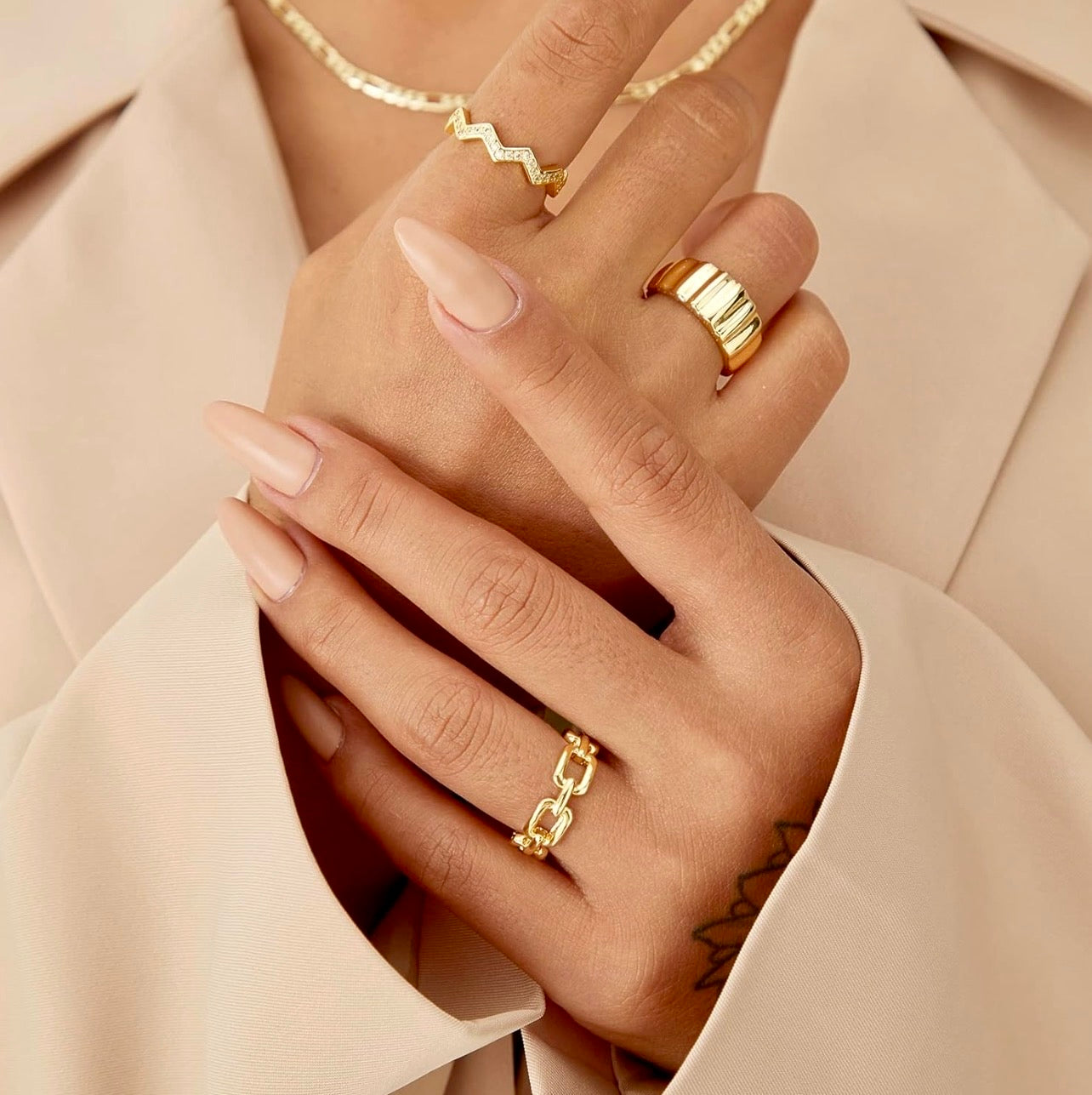 GOLDEN LAYERS by ARELA- 3 piece ring set